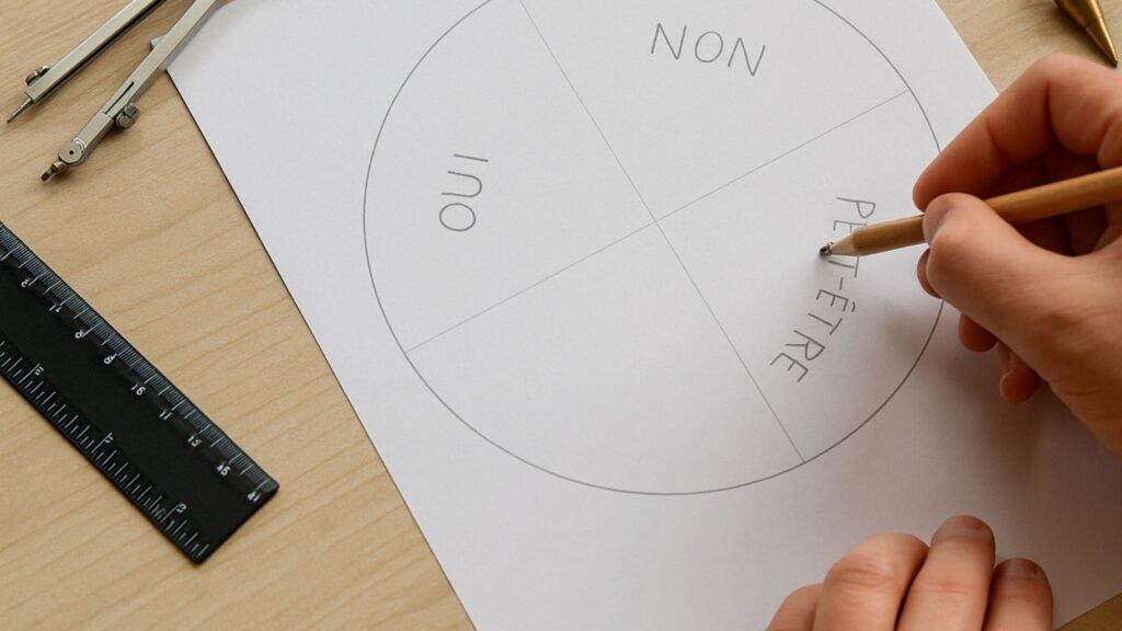 Un exemple très simple : imaginez un demi-cercle, avec « oui » à gauche, « non » à droite, et « peut-être » au sommet.