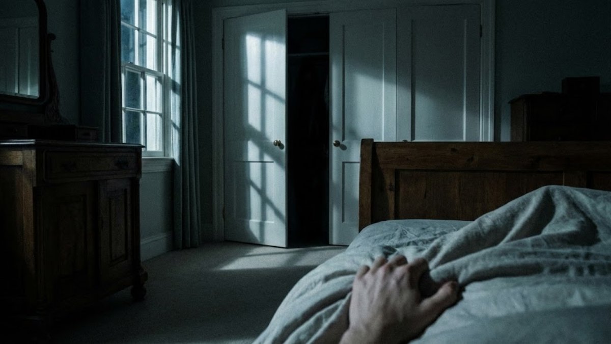 Cet état survient lors de la transition entre l’éveil et le sommeil (état hypnagogique) ou inversement (état hypnopompique). Le corps est temporairement paralysé—un mécanisme naturel pour nous empêcher de vivre nos rêves—mais l’esprit, lui, est conscient. Cette dissociation peut entraîner des hallucinations hypnagogiques extrêmement réalistes. Le cerveau, en état d’alerte et paniqué par l’immobilité, projette des images terrifiantes dans l’environnement réel de la chambre.